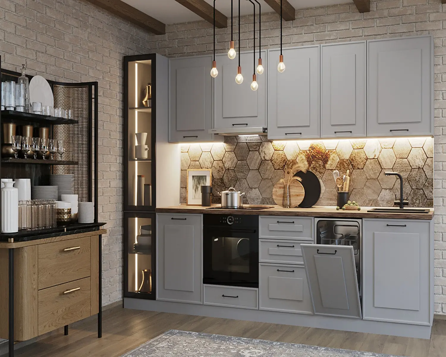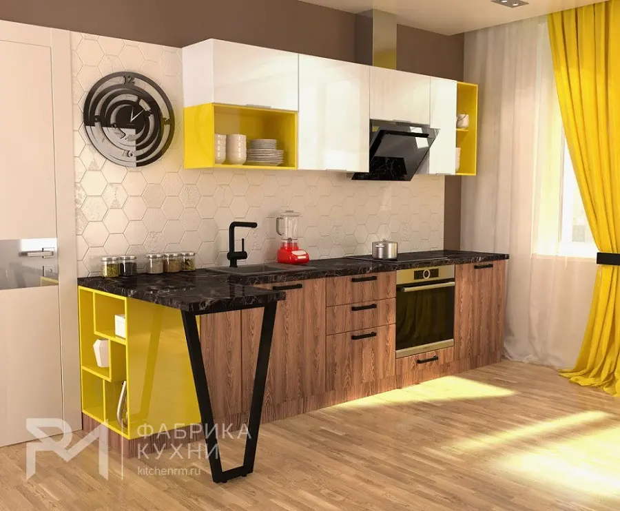 Фартук и столешница — с текстурным акцентом, но не “кричащим”.