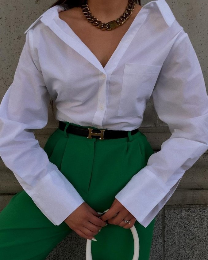 Далее в нашем списке базовых вещей на весну-лето 2022 представлены рубашки, без которых сложно представить гардероб современной модницы. Стильная рубашка может стать не только частью делового образа для офиса, но также и неформального лука для прогулки, шопинга, встречи с друзьями.