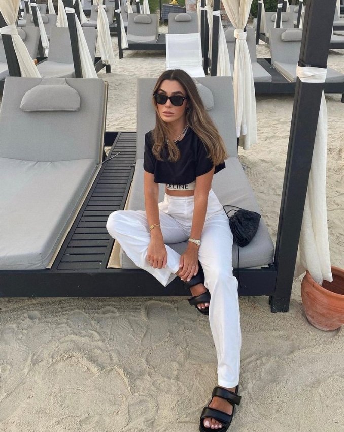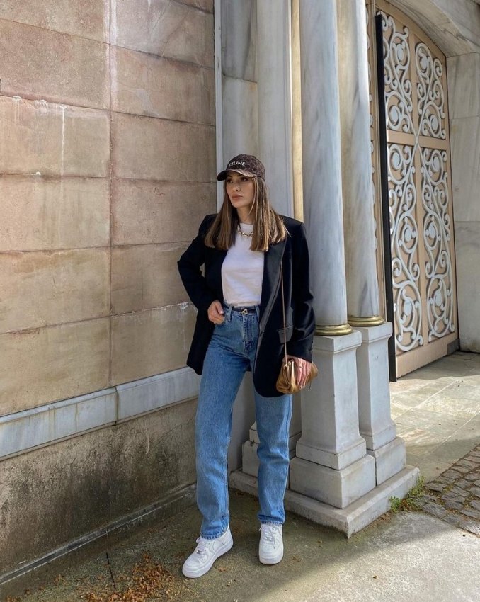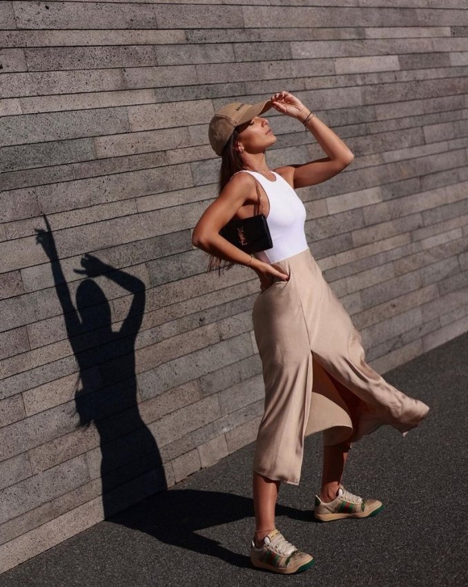 Базовый гардероб немыслим без аксессуаров – стильной сумки среднего размера в стиле Chanel или Dior, выполненные в черном, молочном или бежевом тонах, лодочек и балеток, кроссовок и босоножек. Также не забываем о головных уборах весна-лето 2022 – панама и бейсболка, а также дополняем все солнцезащитными очками в стиле «кошачий глаз».