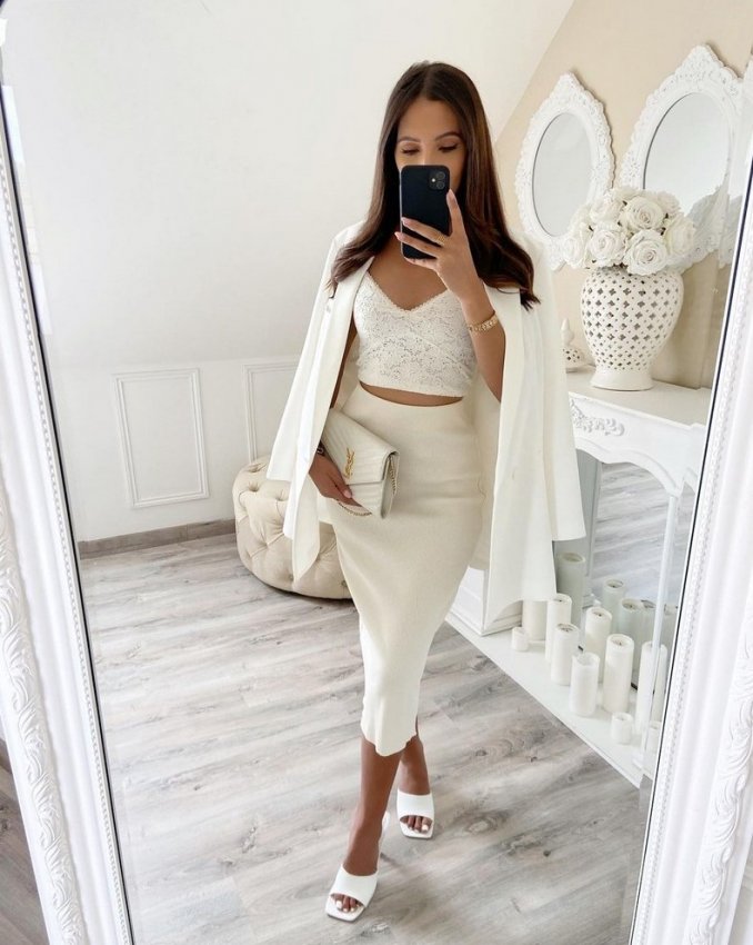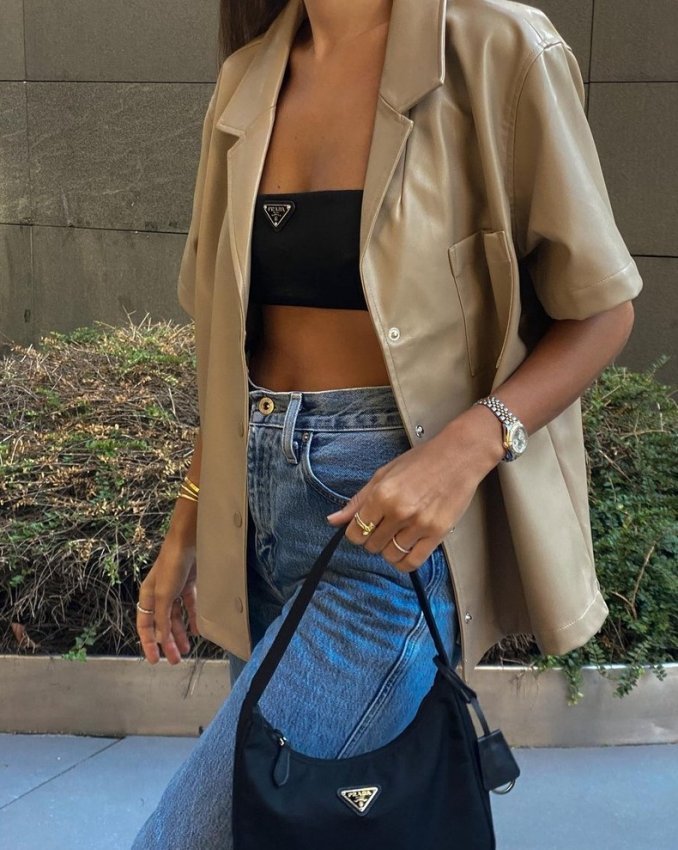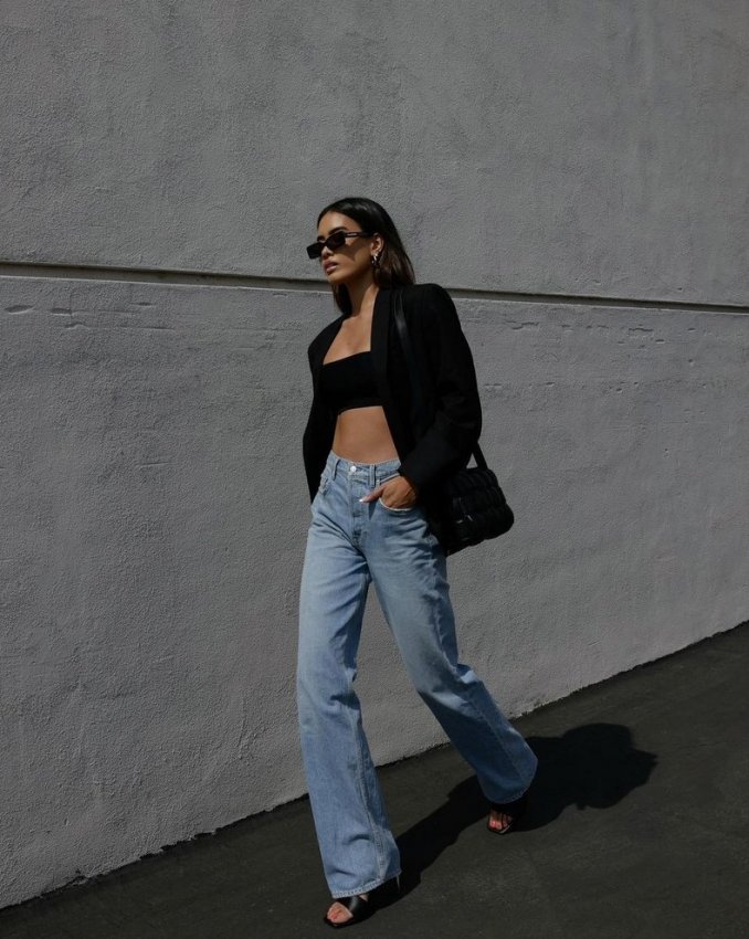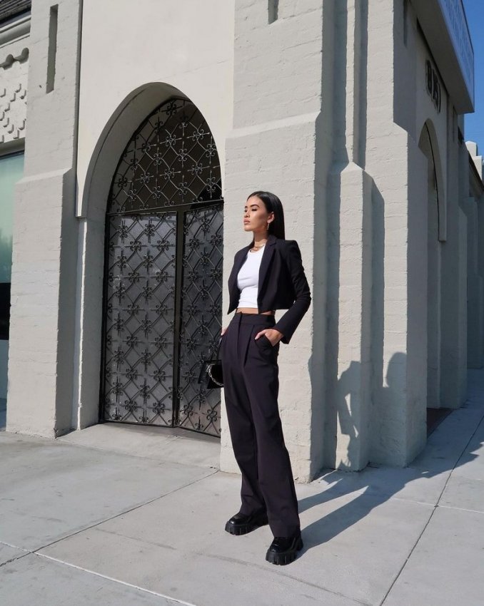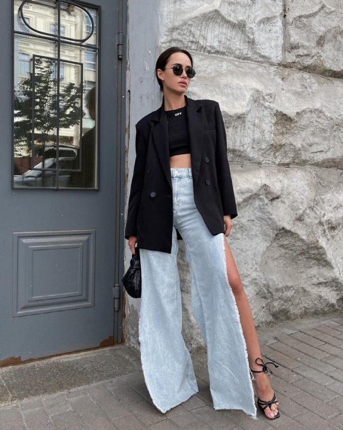 Такой вариант верха подойдет для вечернего образа в комплекте с пиджаком. Также можно носить кроп-топы с джинсами и другой одеждой, подобрав выразительные аксессуары, тогда образ получится акцентированным, стильным и нескучным.