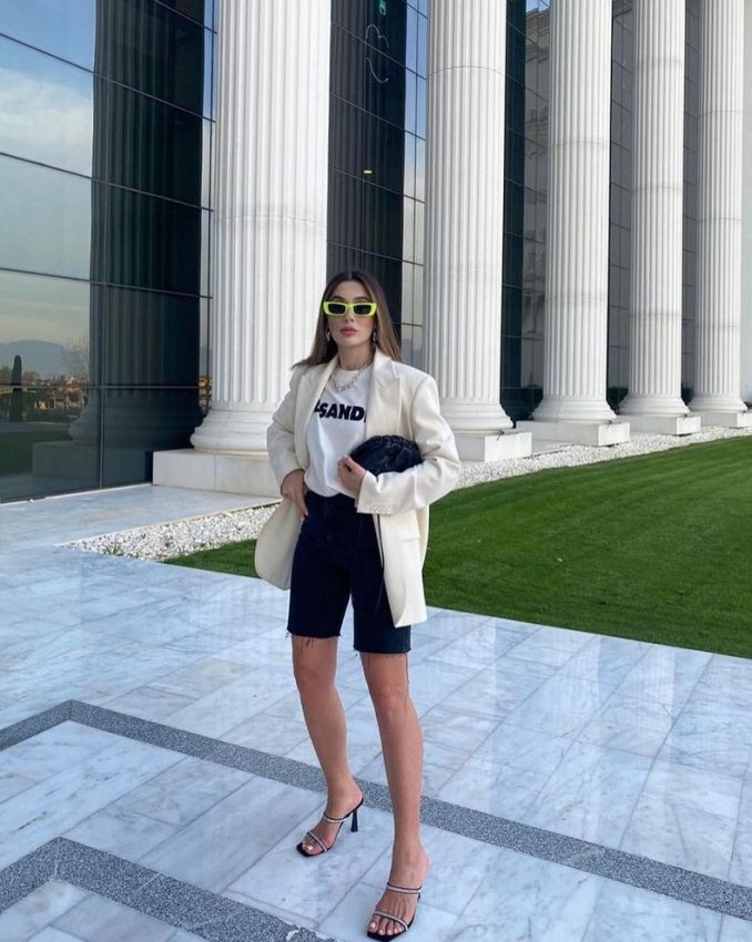Базовый весенне-летний гардероб будет неполноценным без шорт, которые актуальны не только лишь в капсуле для отдыха, но также для городских луков и даже офисных. Предлагаем парочку моделей, достойных Вашего внимания – удлиненные шорты с пиджаком в виде костюма, свободные орты до середины бедра с отворотами, но и, конечно же, шорты и з денима. Такие модели шорт – «must buy» для базвоого гардероба весна-лето.