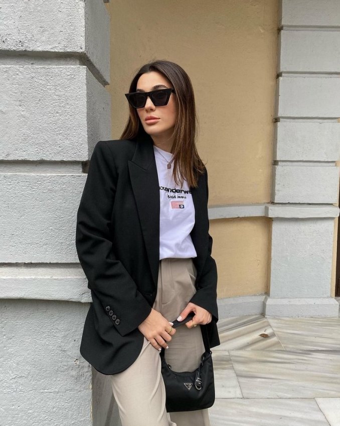 Фаворит сезона, без преувеличения, — стильный пиджак, который актуален круглый год, и должен точно быть представлен в базовом гардеробе. Скажем сразу – много пиджаков не бывает, поэтому присматривайте себе сразу несколько разных фасонов – оверсайз, двубортный, удлиненный, приталенный, твидовый, укороченный, а также в разных оттенках – светлые, темные, яркие.