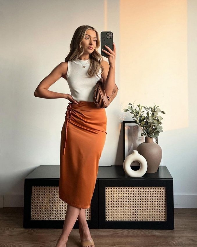 Предпочитаете женственные образы? Тогда юбка станет Вашей фавориткой в капсульном гардеробе для создания деловых и романтичных образов этими весной и летом. В тренде модели юбки-карандаш в длине миди, которые очень круто сочетаются с рубашками и майками. Актуальными будут драпировки и завязки в декоре базовых юбок весна-лето 2022.