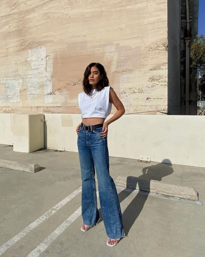 Укороченные топы пришлись по душе многим девушкам, обладающим стройной и подтянутой фигурой. Очень круто смотрятся кроп-топы с брюками, джинсами, шортами с завышенной талией, что позволит носить укороченный топ даже тем представительницам прекрасного пола, у кого присутствуют какие-либо недостатки фигуры.