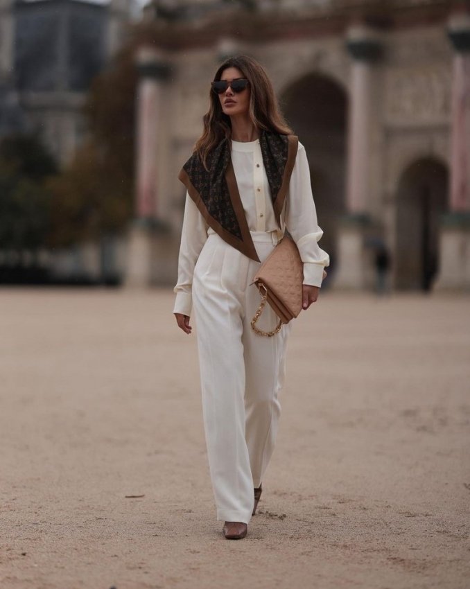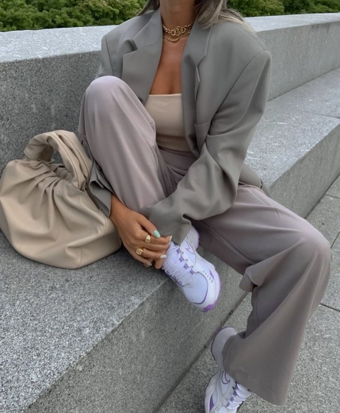 В базовом гардеробе весной и летом обязательно должны оказаться практичные джоггеры, свободные брюки палаццо, романтичные клеш и модели прямого кроя. Фаворит по цвету – нюдовая палитра: бежевый, песочный, молочный.