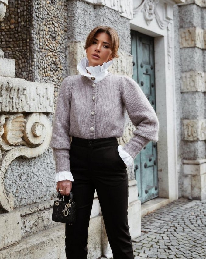 Желание утеплиться и создать максимально уютный образ позволит удовлетворить красивый кардиган. Модели кардиганов весной-летом 2022 весьма разнообразны и нескучны. Это могут быть классические приталенные модели средней длины, с вязаными узорами и объемными рукавами, а можно присмотреть яркие принтованные кардиганы оверсайз, которые станут отличным решением в «капсуле» для прогулки, шопинга и встречи с друзьями.