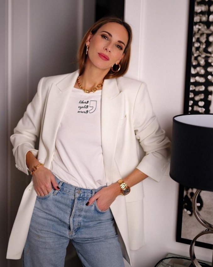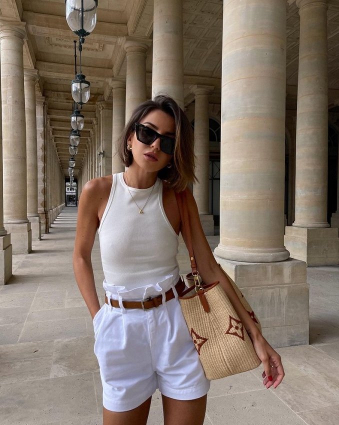 «Белая футболка отлично впишется в капсульный гардероб весны и лета 2022, ведь ее можно надеть как в офис с брюками и брючным костюмом, так и на свидание в тандеме с юбкой, а также для прогулки с шортами.»