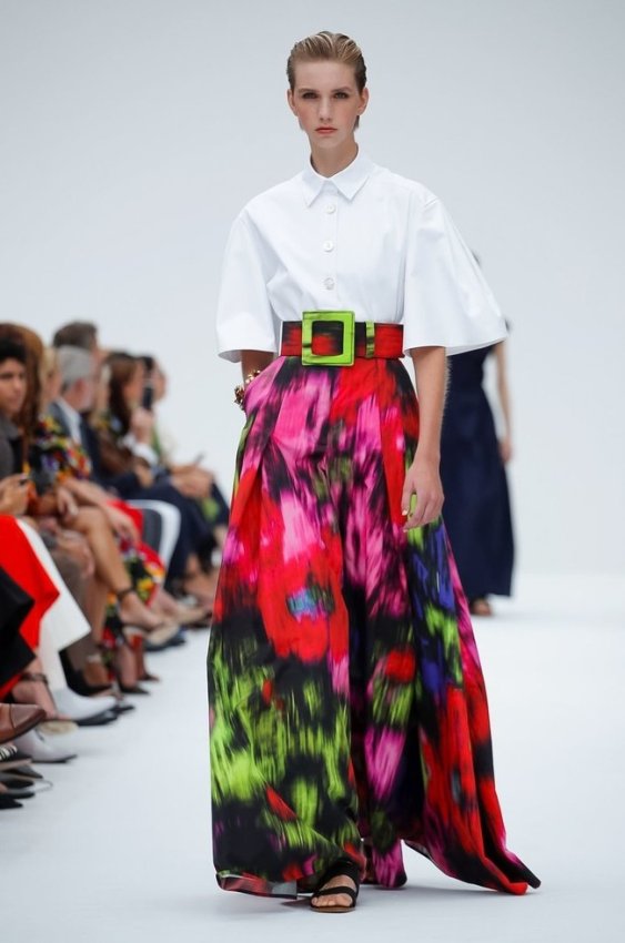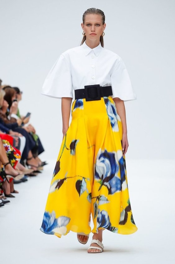Несколько сезонов подряд длина юбок неумолимо стремилась вверх, но следующей весной дизайнеры официально позволили нам сменить мини на макси. Одним из первых новую сексуальность представил креативный директор Carolina Herrera Уэс Гордон. На показе американского бренда девушки ходили по подиуму в юбках с акварельным и цветочным принтами — их идеально дополняли строгие рубашки с короткими рукавами и ультраширокие пояса.