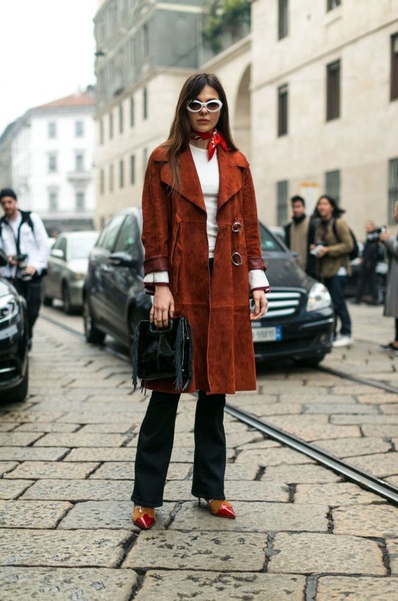 В тренде будут семидесятые и продуманные по цвету образы. Так что хорошо этой осенью будут смотреться характерные для этой модной декады оттенки коричневого и рыжего, а особенно их сочетания.