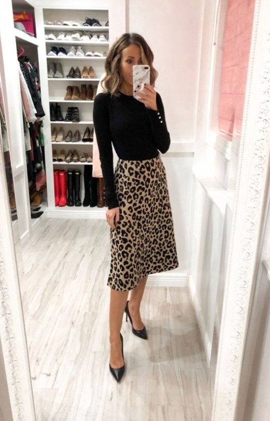 Если говорить о юбках — то в первую очередь обращаем внимание на длину. Все, что выше колена — не в офис. По крайней мере не в этом сезоне точно. Останавливайте выбор на юбках-миди прямого или свободного кроя. Слишком облегающий «карандаш» или пышное «солнце» — не подходит.