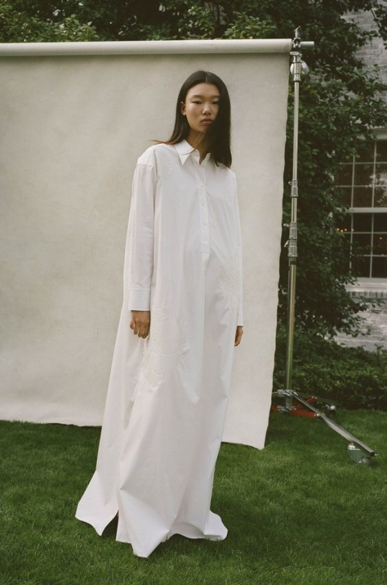 Забудьте о вредном предубеждении, что тотал-вайт носят только на торжественные мероприятия. В свободном платье в пол, как в лукбуках Jil Sander и Tory Burch, можно отправляться хоть за утренними круассанами, хоть на прием. Но кинематографичнее всего, конечно, идти в нем на романтические прогулки вдоль побережья. Удобно, что к такому платью как раз просится простая обувь: простые кеды, сандалии или балетки с квадратным носом.