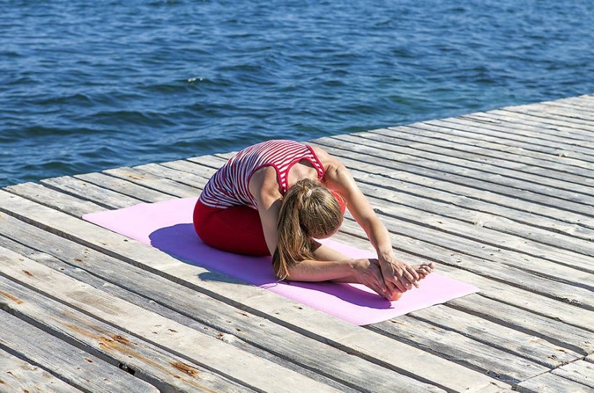 Сядьте на пол, подтяните левую пятку к промежности, а левое колено оттяните назад насколько это возможно. Правую ногу оставьте выпрямленной. Положите руки на правое колено, расслабьте мышцы спины, сделайте вдох и медленно наклонитесь вперед, скользя руками по правой ноге в сторону стопы — нужно ухватиться за стопу или правую лодыжку руками, постараться коснуться подбородком колена. Выполнять позу минуту, а затем повторить тоже самое со второй ногой. Следите за тем, чтобы не поднимать ягодицы и не округлять спину. Вы почувствуете как разум стал яснее, а мигрень постепенно отступает.