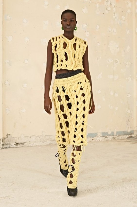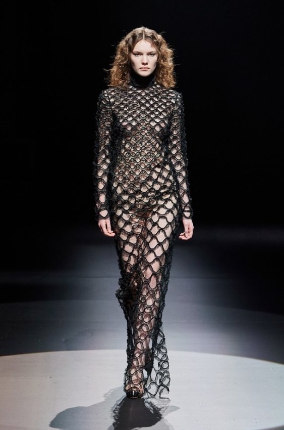 Комфорт будущей осенью достигнет апогея и превратится в нечто авангардное. Примеры можно увидеть на показах Acne Studios и Valentino — вязаная сетка на голом теле выглядит действительно завораживающе.