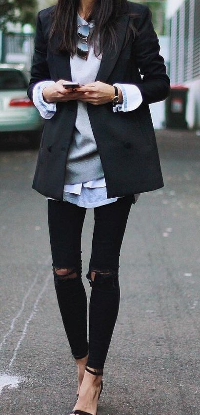 6. Очень важно, чтобы все сидело с определенной долей свободы. Если вы еле-еле смогли втиснуть фактурный толстый свитер под жакет — это будет выглядеть неуклюже.