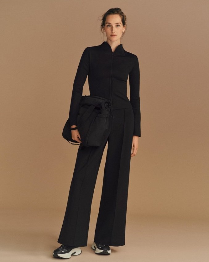 Прочный материал куртки с защитой от ультрафиолетовых лучей UPF 40+ — отличное решение в межсезонье, когда погода в течение дня меняется по несколько раз. Ну а широкие брюки со стрелками — абсолютный мастхэв, вне зависимости от сезона.