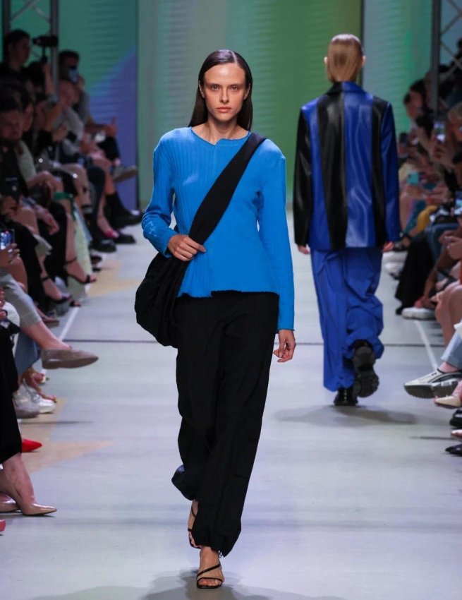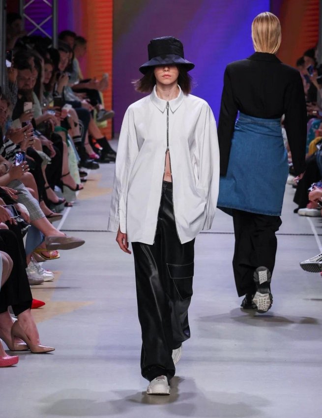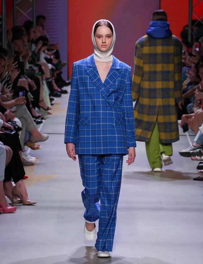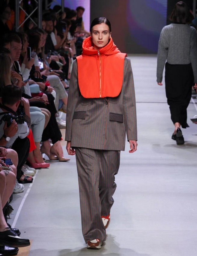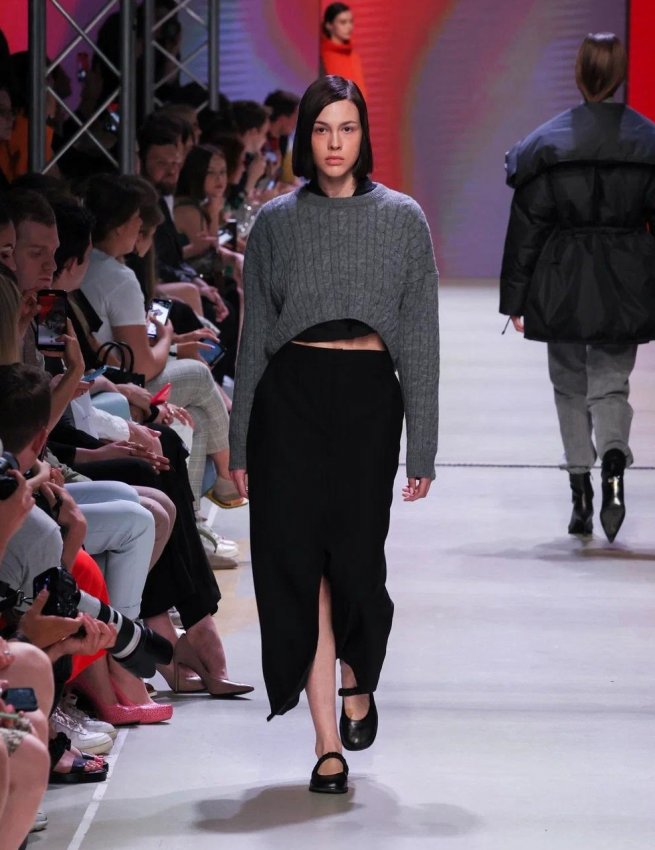 На основной площадке в парке «Зарядье» состоялся показ российского бренда STUDIO 29 — для марки это шоу стало дебютным. На подиуме были представлены 27 образов из новой осенне-зимней коллекции, куда вошли базовые, но при этом яркие вещи на каждый день: алые и оранжевые тотал-луки с длинными пальто и брючными костюмами, укороченные рубашки и свитеры, узкие юбки — миди и мини, — асимметричные топы на одно плечо, водолазки и стеганые куртки.