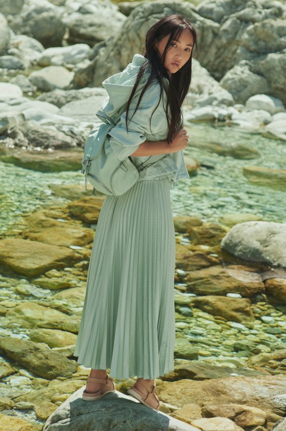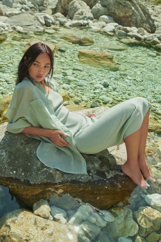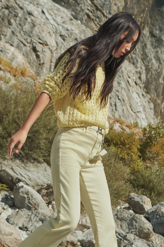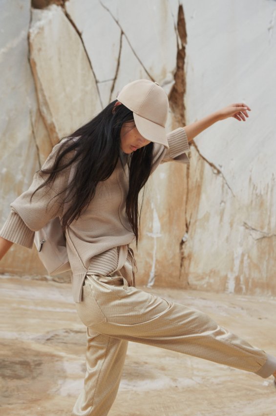 В новом кампейне на фоне холмов и карьеров итальянской Каррары актриса и модель Корлан Мади примерила монохромные образы новых цветов, которые стали основой коллекции сезона весна-дето 2022: вулканический серый, мятный, солнечно-желтый, песочный и белый.
